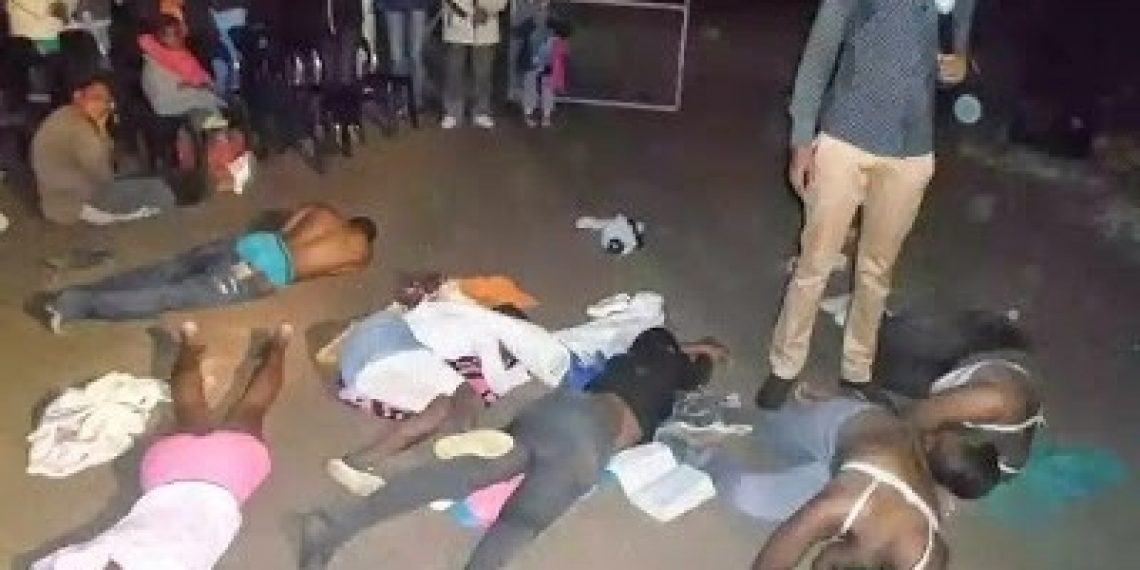 In the images, members of the church can be seen stripped down to their underwear and the pastor is seen stepping on some.