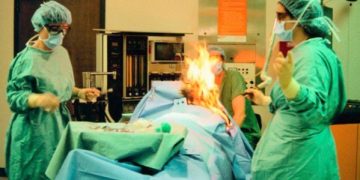 It concluded: “When the patient’s intestinal gas leaked into the space of the operation (room), it ignited with the irradiation of the laser, and the burning spread, eventually reaching the surgical drape and causing the fire.”