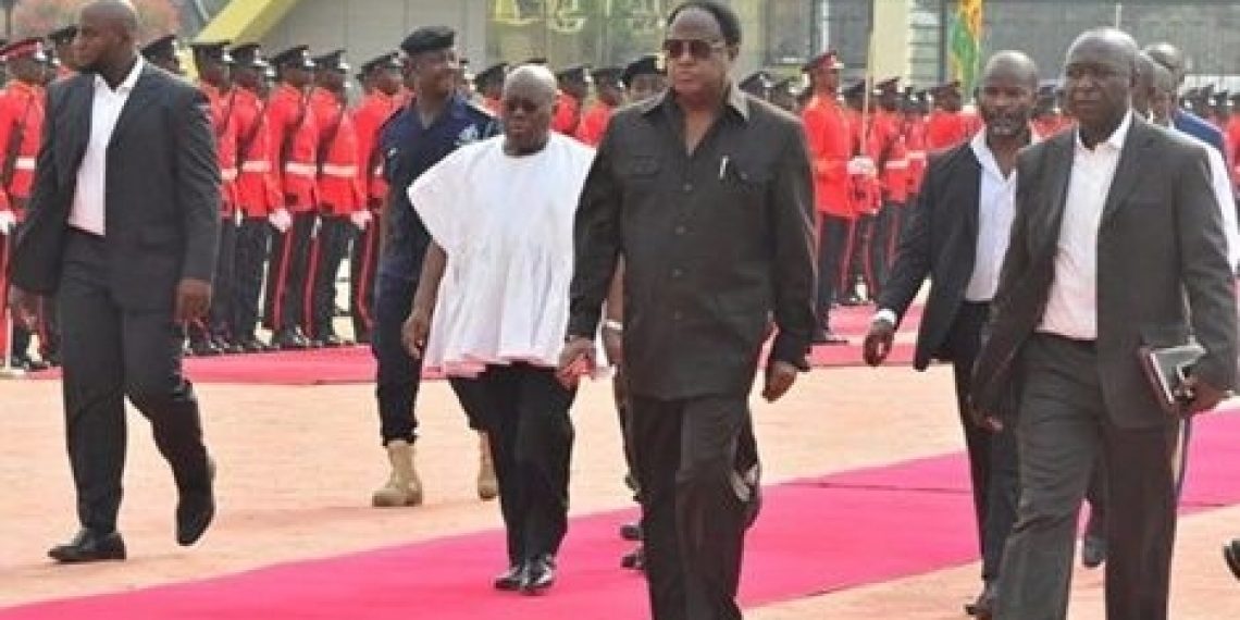 President Akufo-Addo inspects the Guard of Honour on his first day at the office.