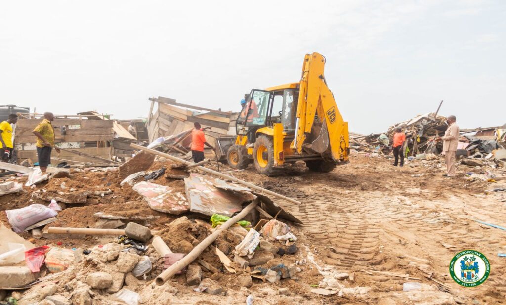 The Accra Metropolitan Assembly (AMA) has removed unauthorised structures at the Dogo Beach which serves as a temporary fishing bay for the fisherfolk at Jamestown.