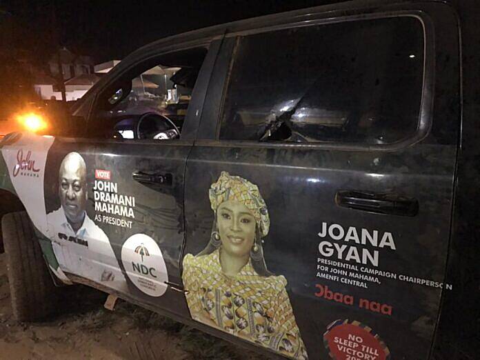 Information available to the police indicates that, the incident occurred when the Parliamentary Candidate and her team came across a vehicle parked in the middle of the road at Adjakaa Manso township while returning from a political event.