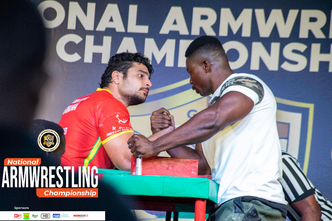 Transmitted Live on television and watched by many on sicial media in Ghana and beyond, the National Armwrestling Championship saw pullers/armwrestllers in high spirit enthusiastically display skill, strength and showmanship to thrill fans and viewers at the venue which was cladded with a professional set up that can be likened to only the World Amwrestling Championship or any other international events.