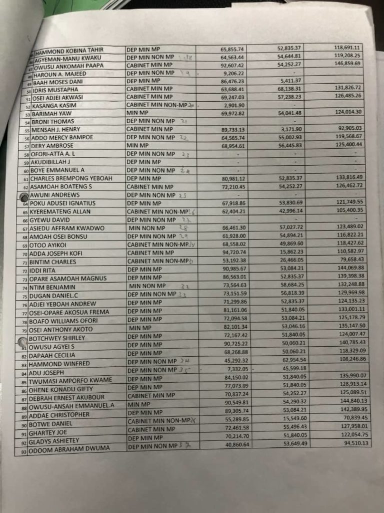 Ms Osei-Opare herself was also listed among the ex-MPs requesting for the payments after serving as MP for the Ayawaso West Wuogon Constituency with the period.