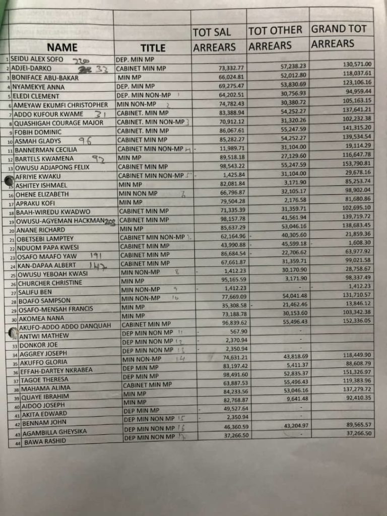 The payments were to the tune of 80% salary increment for four years in addition to other arrears amounting to GHC 29.7 million in total for all the persons involved.