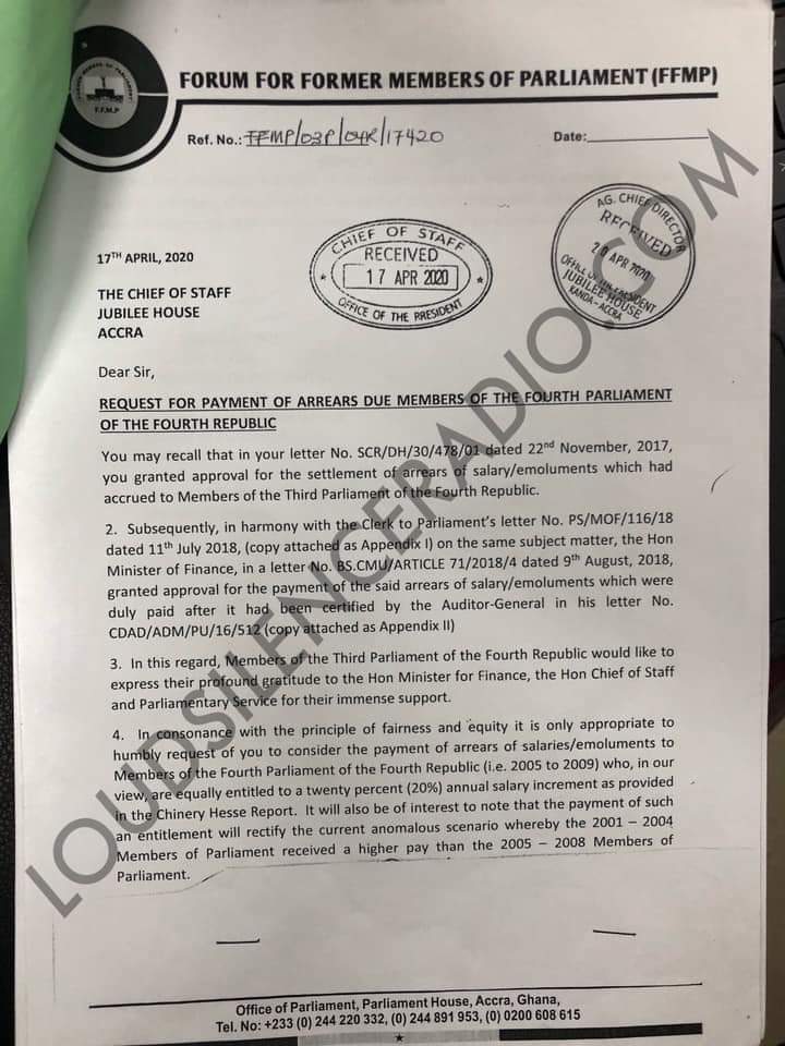The group had written to Ms Osei-Opare in a letter dated April 17, 2020. They had attached documents demanding some arrears in salary, gratuities and other emoluments spelt out for Article 71 holders who served between 2005 and 2008.