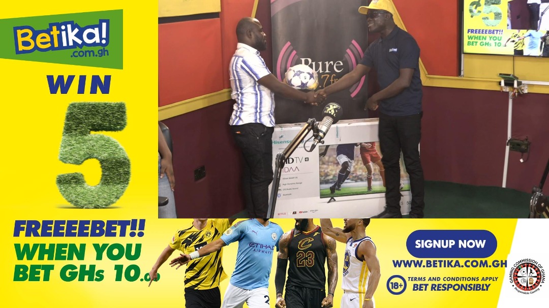 The brief ceremony was held at the studios of Pure FM, Kumasi, in the presence of the ‘Renowned Ship Dealer’ Oliver Khan. Making the presentation, Eddy Osei-Ntim, Head of Business at Betika said: “At Betika, we will always ensure that we offer our customers a credible platform where they enjoy their favorite sport as they place their bets on a platform that offers them the best experience with great rewards. Mr. Amankwah has walked away with a 50 Inch TV and branded merchandise to share with his family.