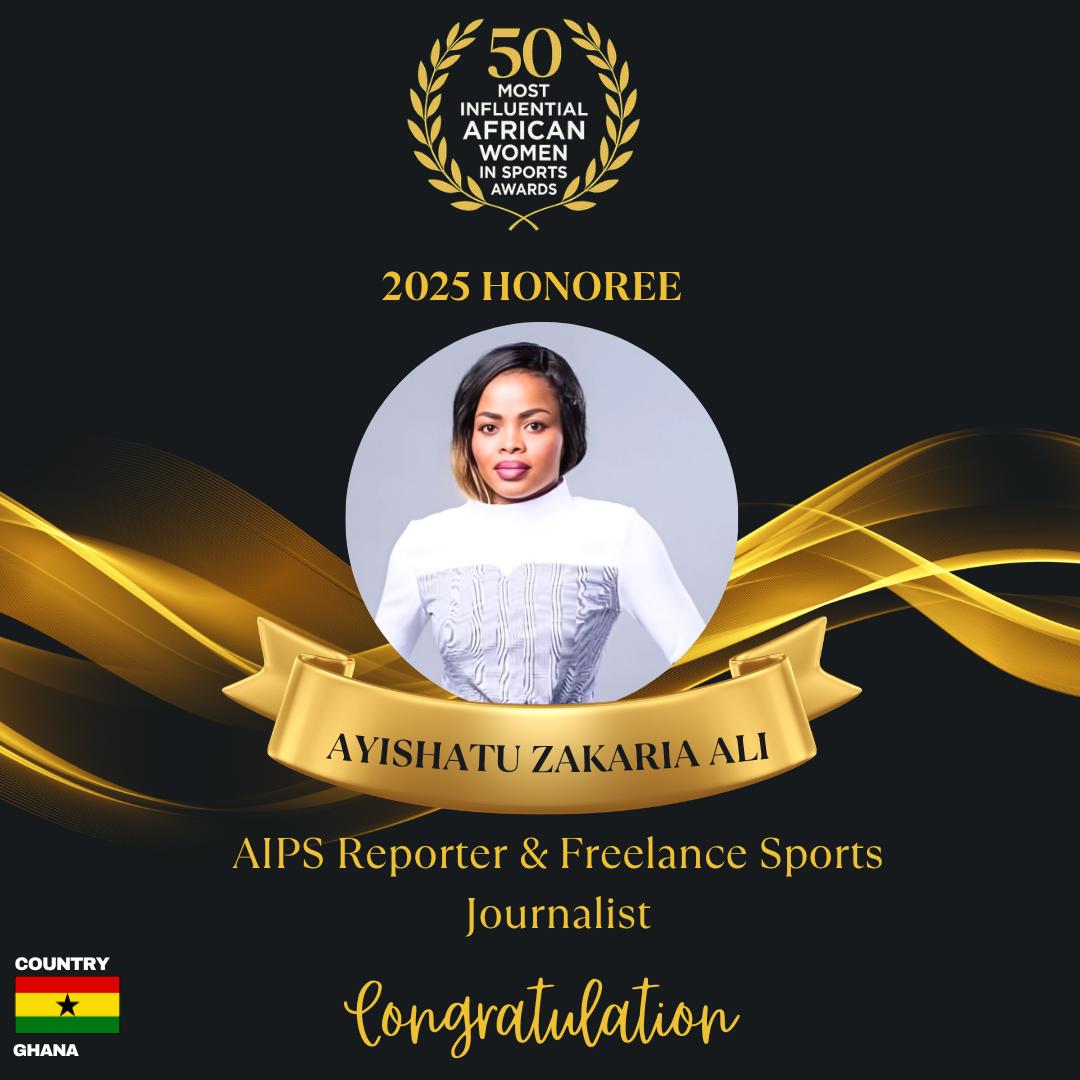 Ghanaian freelance journalist and women’s football advocate Ayishatu Zakaria Ali has been honoured with a nomination among the 2025 “50 Most Influential African Women in Sports”, a continental recognition celebrating women who are shaping the future of sports in Africa.