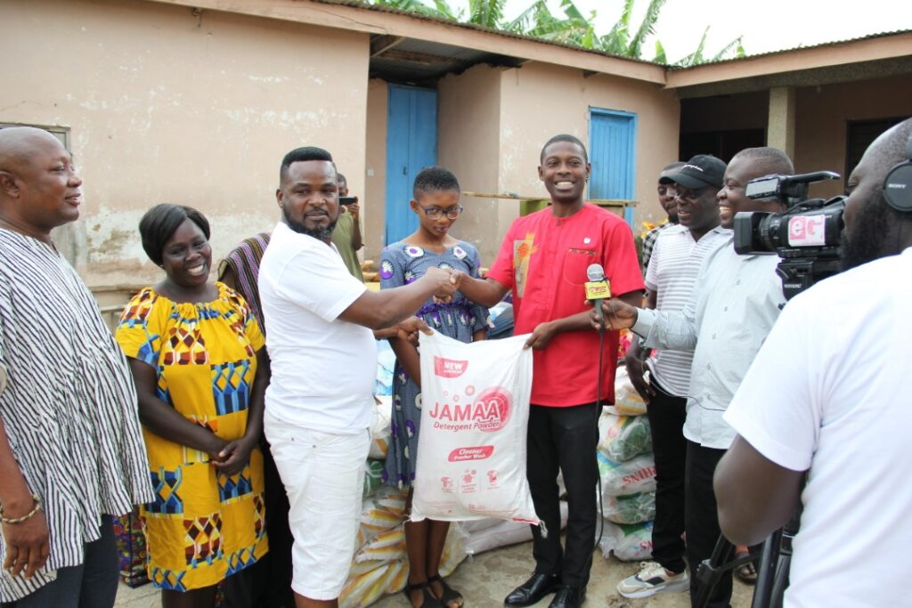 Presenting the items, Programmes Manager for Happy98.9FM, Elwoode Mantey, quoting James 1:27 ( Religion that is pure and undefiled before God the Father is this: to visit orphans and widows in their affliction, and to keep oneself unstained from the world.)