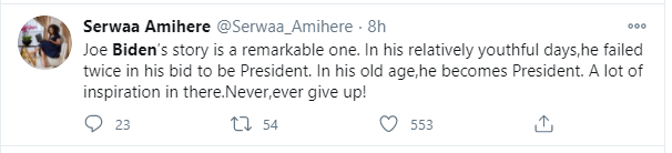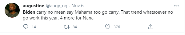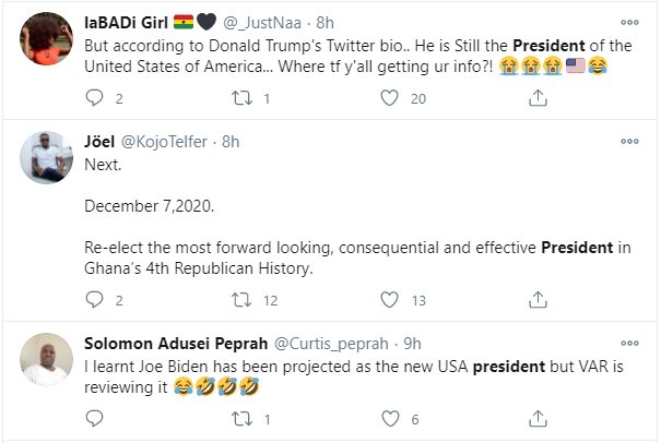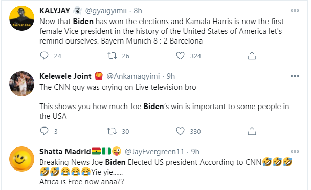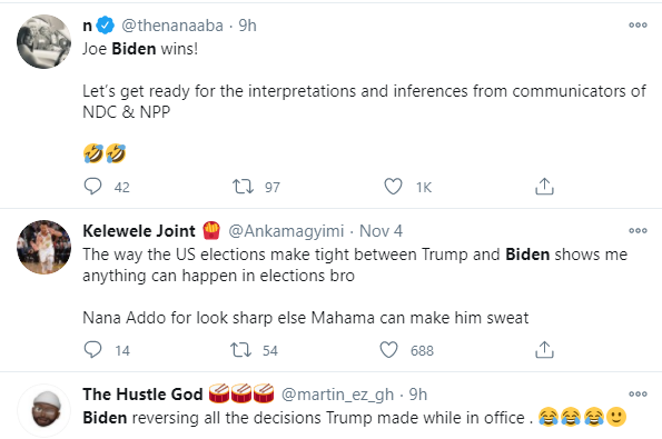 However, Ghanainas on social media have been reacting to Biden’s win over President Trump.