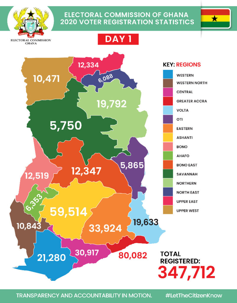 The Electoral Commission as part of its mandate to update Ghanaians on the ongoing voter’s registration exercise has released comprehensive figures it gathered in all 16 regions on the ninth day of the exercise.