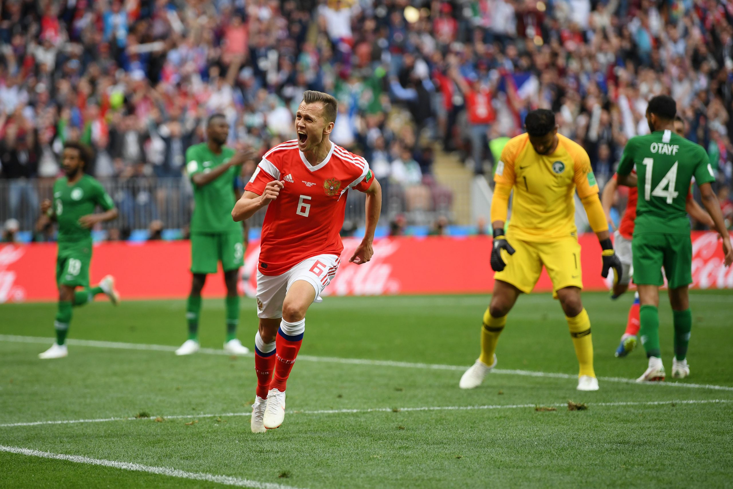 Substitute Denis Cheryshev added a second just before half-time as he collected Roman Zobnin’s pass, cut inside two Saudi Arabia defenders and finished well.