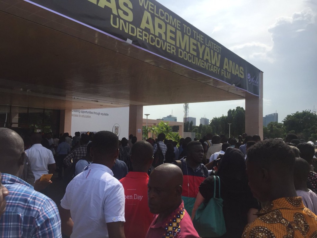 Hundreds of Ghanaians have gathered at the Accra International Conference Center (AICC) for the view Ace Investigative of journalist Anas Aremeyaw Anas’ investigative piece on corruption in Politics and Ghana football.