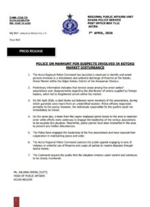The Ghana Police Service has launched a manhunt to apprehend individuals involved in a disturbance and unlawful discharge of firearms at the Kotoku Onion Market in the Adjen Kotoku District.