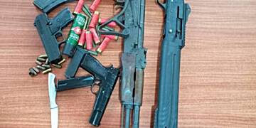 Exhibits retrieved from the crime scene include: one (1) AK47 Assault rifle, ten (10) rounds of AK47 ammunition, one (1) pump action gun with nine (9) rounds of BB cartridges, two (2) pistols with ten (10) rounds of 9mm ammunition, one (1) unregistered Toyota Tacoma pickup, four (4) motorbikes, three (3) of which are unregistered, a knife and pepper spray.