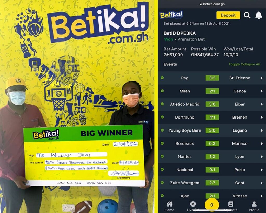 Betika, the fastest growing sports betting firm in Ghana rewards betting enthusiasts by providing the best odds in the market. The firm has fulfilled its obligation by presenting its latest winner Mr. William Okai with GH¢47,664.37.