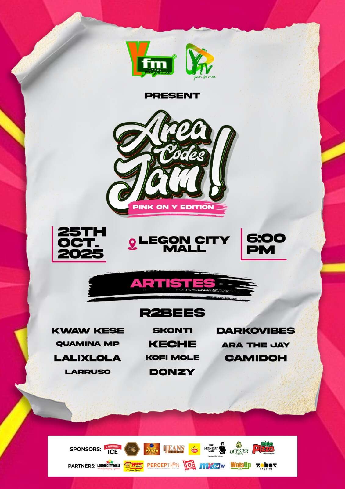 Accra is about to turn pink and loud as Ghana’s #1 youth and urban radio station, YFM, storms the Legon City Mall this Saturday, October 25, with the 2025 edition of Ghana’s longest and biggest community focused concert; Area Codes Jam.
