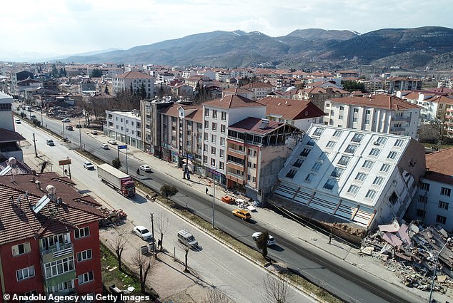 Collapsed buildings and heaps of rubble were also photographed in the Golbasi district, worsening the toll taken to Turkey’s infrastructure.