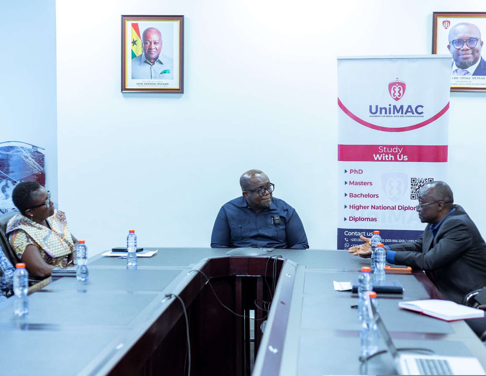 Other UniMAC leaders present at the meeting included the Pro Vice-Chancellor, Professor Winston Kwame Abroampa; Acting Registrar, Dr. Obaapanin Adu Oforiwaa; Director of Finance, Mr. Francis Obeng; and Assistant Registrar, Mr. Robert Dadzie, all of whom expressed support for the initiative.
